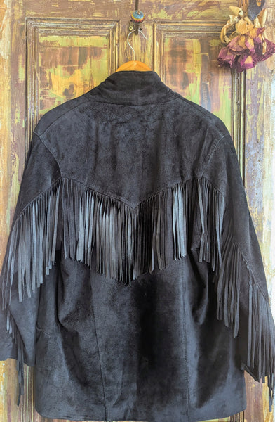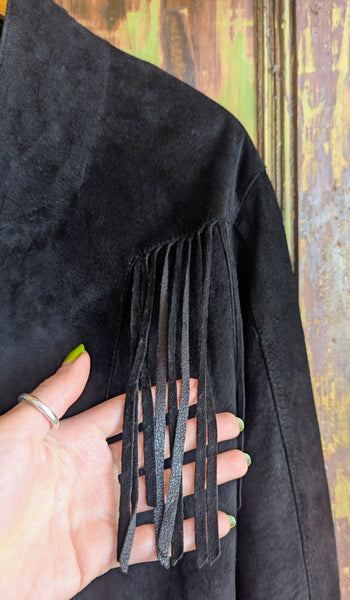 Gorgeous vintage black suede fringed jacket.